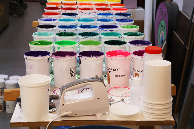 Buying and trying 60 pigments from verfmolen De Kat and Kremer Pigmente, through a grant from Creative Industries Fund and Stichting Stokroos. Period: throughout summer 2025. Location: Paul Wyber Zeefdruk, Amsterdam.
