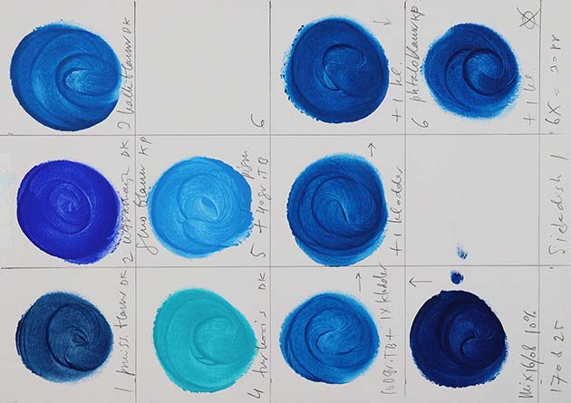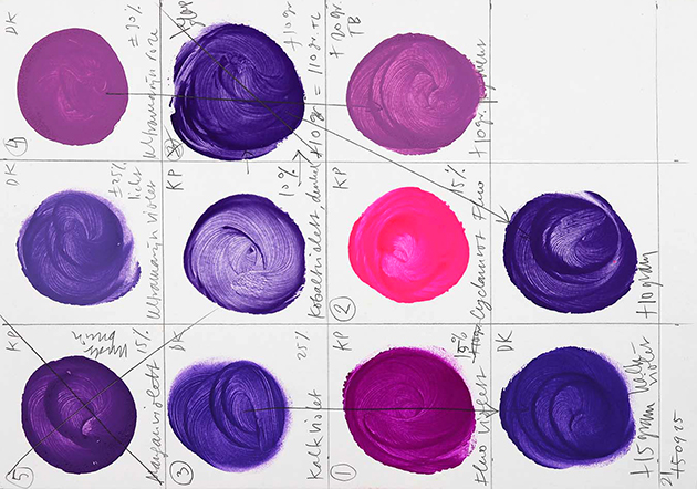 Kremer Pigmente (Germany) has a total of 1,145 pigments for sale. Verfmolen De Kat (Netherlands) has 108. How to choose? Historical pigments, very expensive, and toxic pigments were immediately out of the question. I couldn’t buy all 202 modern pigments either. Judging from digital reproduction photos, my choice was often a gamble.