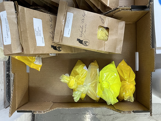 Buying and trying 60 pigments from verfmolen De Kat and Kremer Pigmente, through a grant from Creative Industries Fund and Stichting Stokroos. Period: throughout summer 2025. Location: Paul Wyber Zeefdruk, Amsterdam.