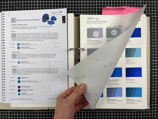 Stefan Muntwyler’s Das Farbenbuch (CH), with realistic (18 colour offset) reproductions of color samples of virtually every conceivable pigment, provides clarity. The samples link directly to the Kremer catalog. Combined with Kremer’s own physical color samples, the catalog, and their scientific online database, a workable reference framework is created.